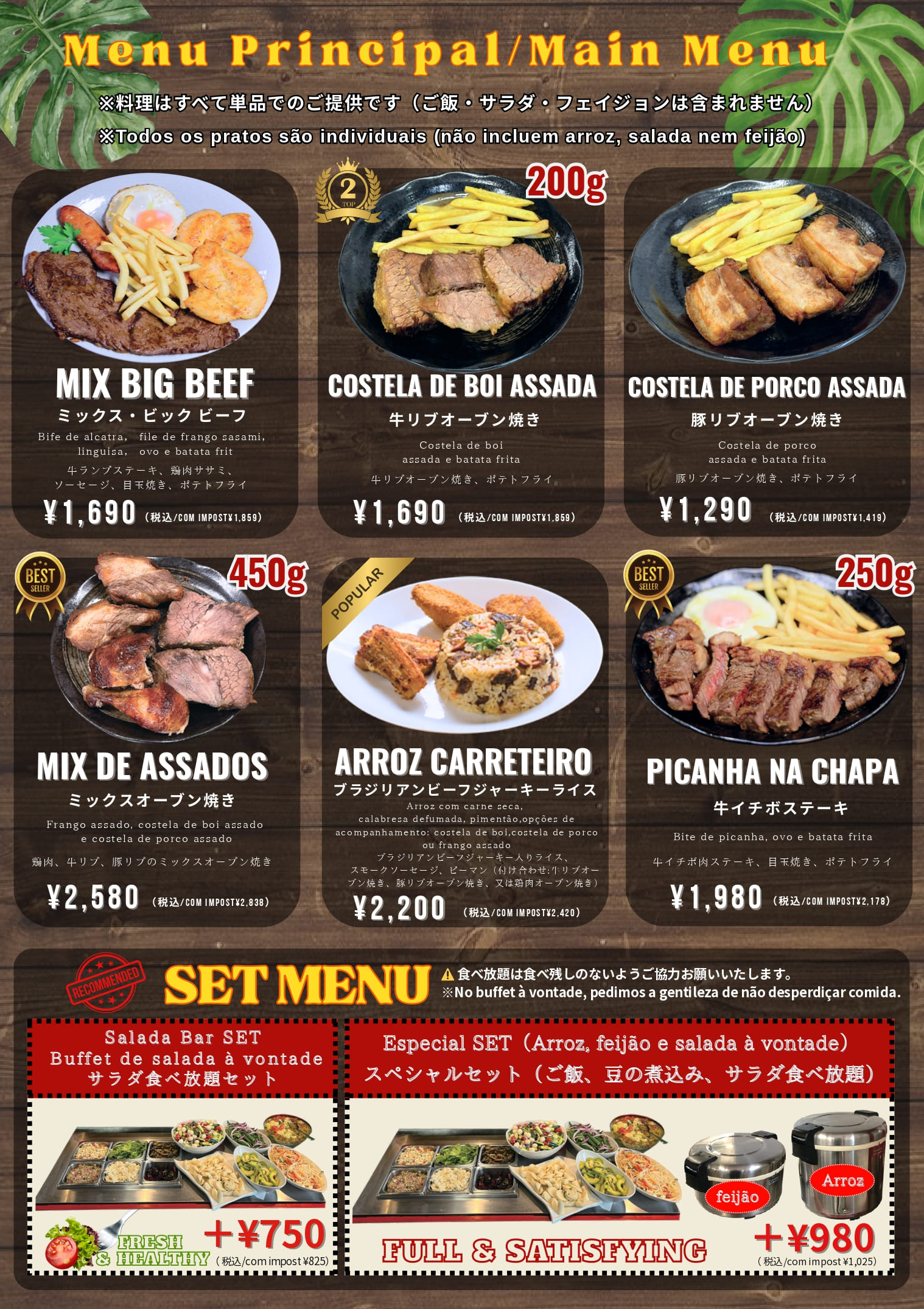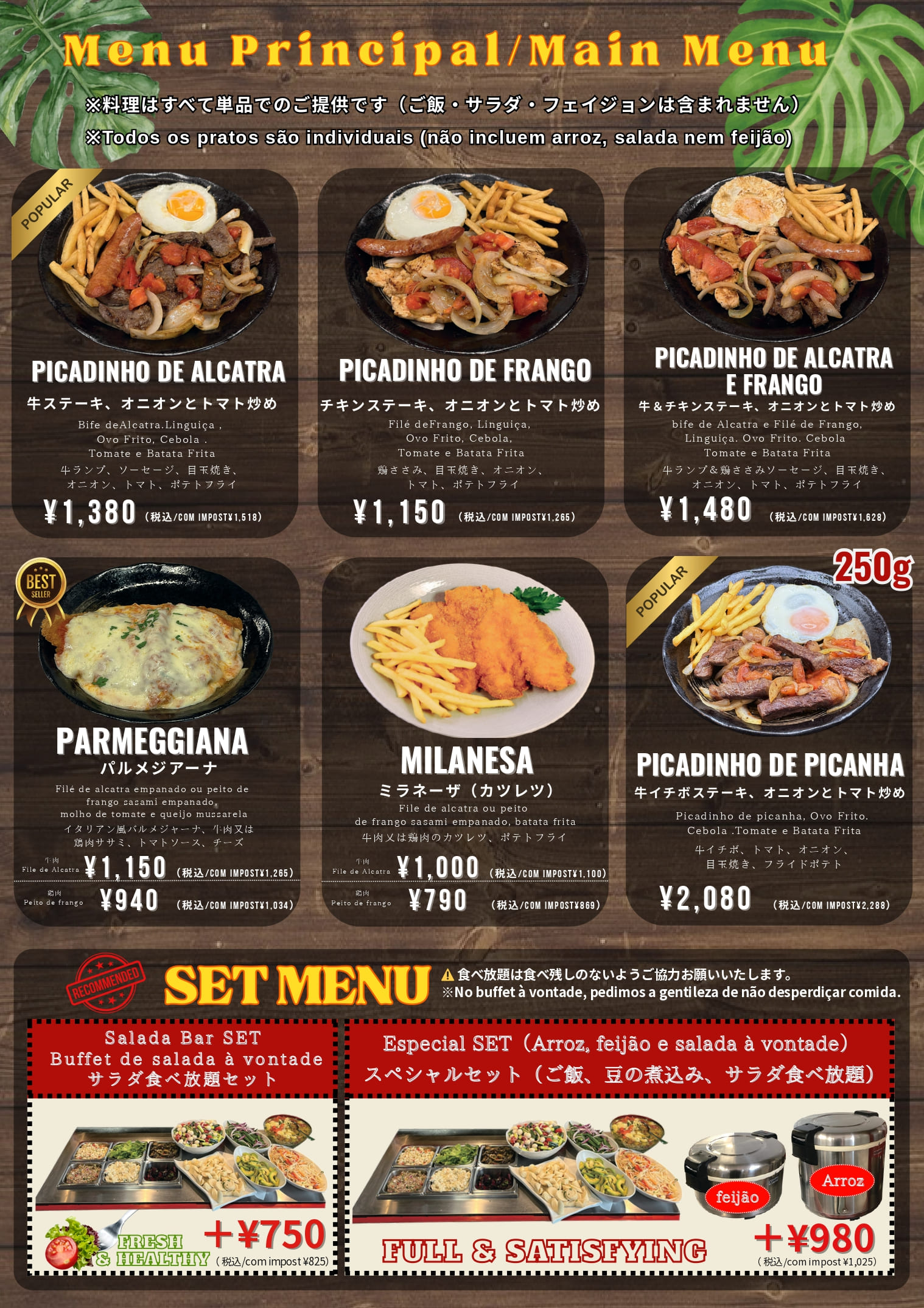 ♦ Donburi: Bife & Linguiça Don-Filé de Frango e Linguiça Don-Bife à Parmegiana;